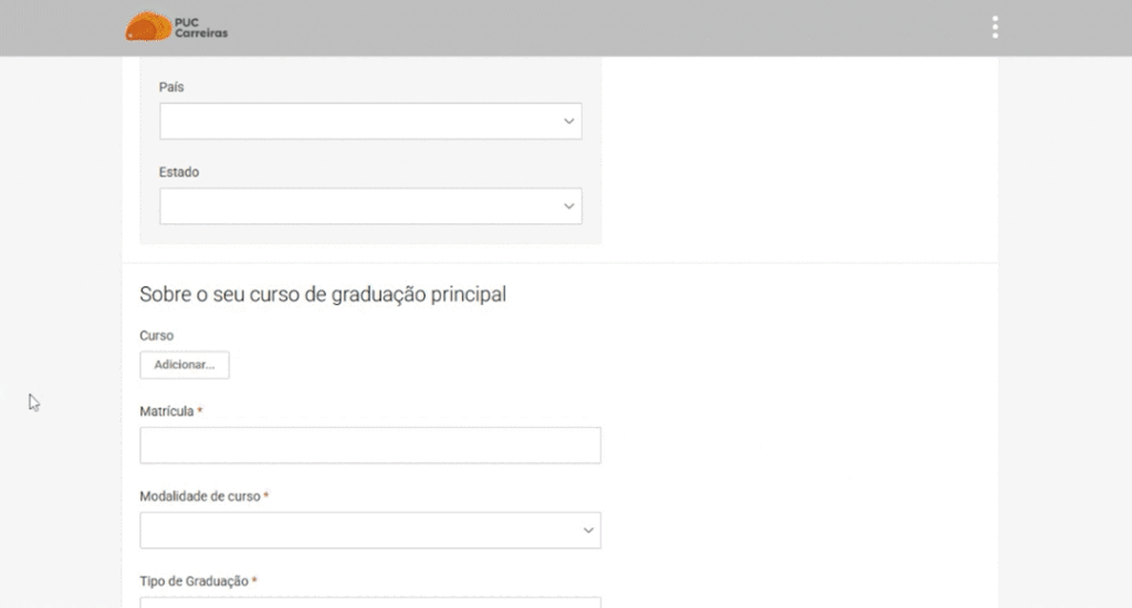 Os cursos de Graduação Tecnológica presenciais estão vinculados aos seus Institutos ou Faculdades de origem. No caso dos cursos de Graduação e Graduação Tecnológica EAD, você deve selecionar a PUC Minas Virtual.