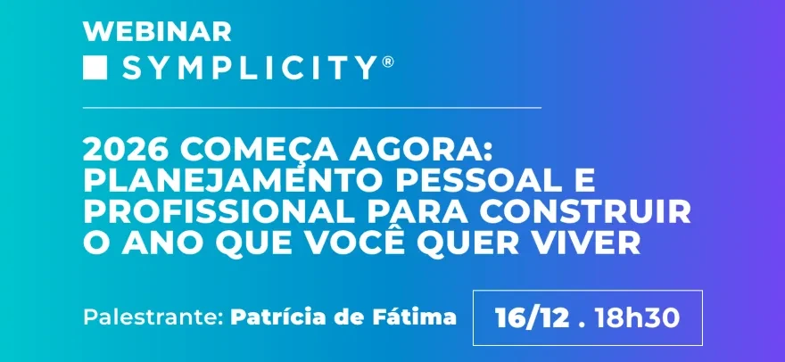 Data Inicial:O último Webinar Symplicity de 2025 acontece na próxima terça, 16 de dezembro, às 18:30, e vai te ajudar a fortalecer sua clareza pessoal, definir metas alinhadas ao seu propósito e transformar planos em ações reais.